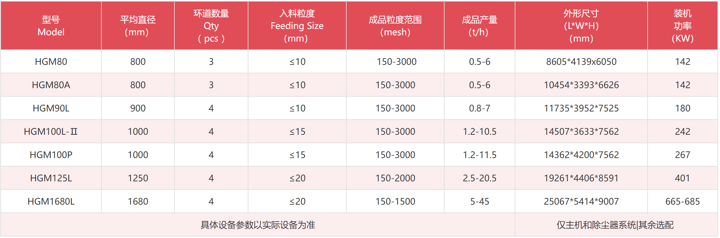 一、首先以科利瑞克超細(xì)環(huán)輥磨粉機參數(shù)為例了解一下磨石粉機器